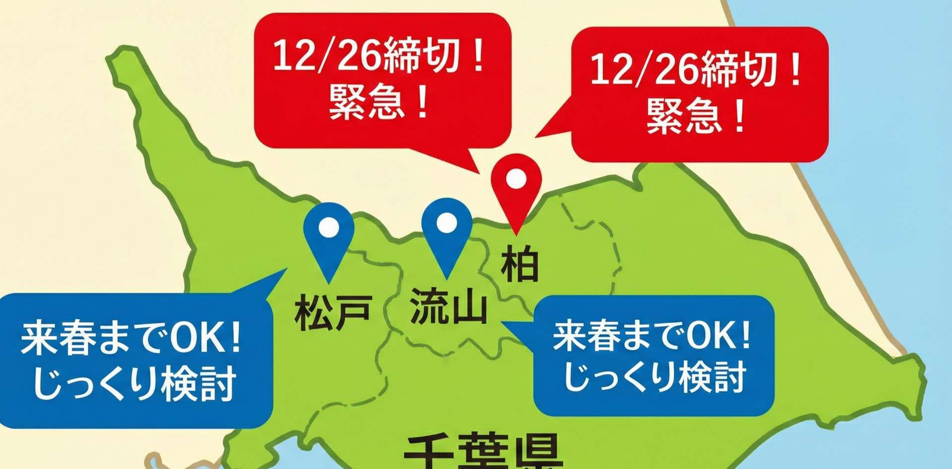 - 流山市・松戸市は来年2月〜3月まで期限があり、じっくり検討する時間がある