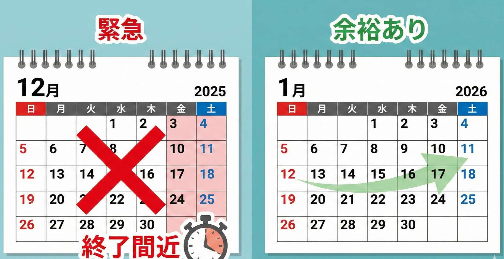 この場合、12月時点ではまだ時間的な余裕があります。焦って契約する必要はなく、複数の業者を比較したり、ご家庭に最適なプランをじっくり練ったりすることが可能です。